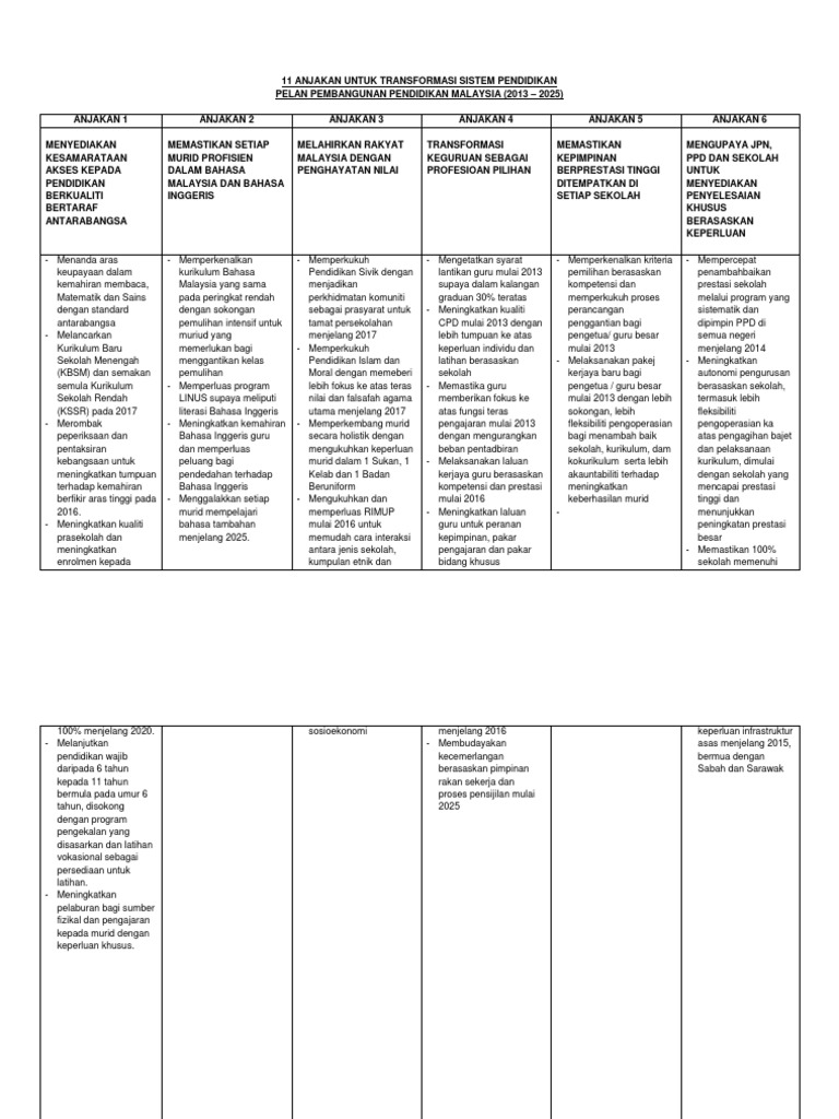 Pelan Pembangunan Pendidikan Malaysia 2013 2025 Ringkasan