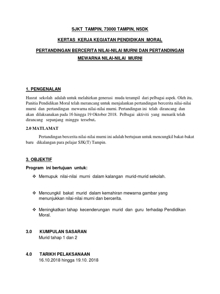 Penerapan Nilai Nilai Murni Dalam Proses V Abstrak Perkara Yang Harus Ditekankan Bagi Melahirkan Pdf Document