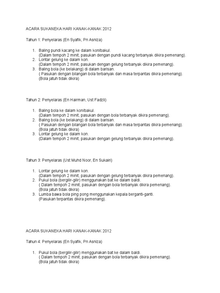 Senarai Acara Sukaneka Hari Kanak 2017docx