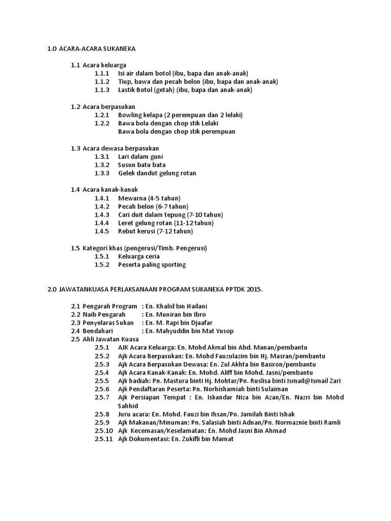 Doc Kertas Kerja Hari Keluarga Dan Sukan Tahunan Jumaadil Talakan Academia Edu