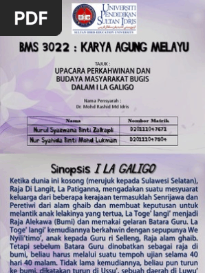 Upacara Perkahwinan Dan Budaya Masyarakat Bugis Dalam I La Galigo