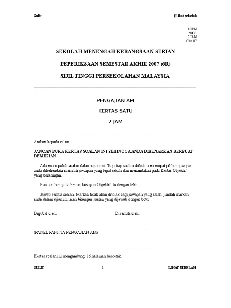 Pengajian Am Percubaan 2017