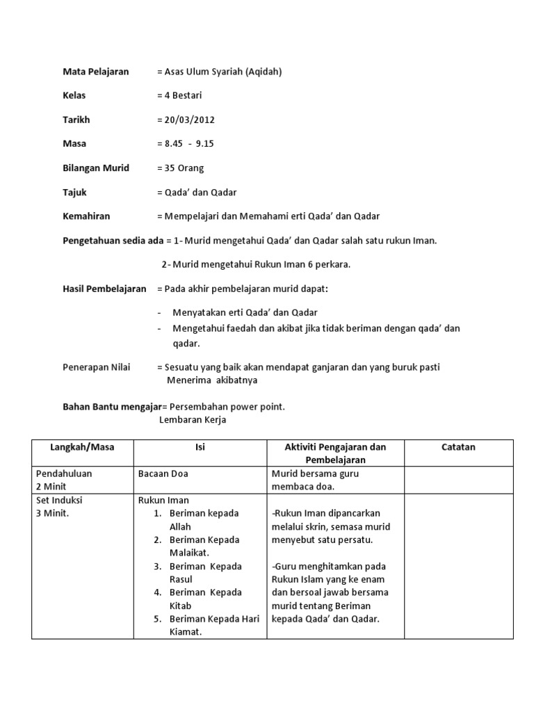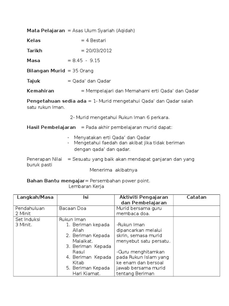 Beriman Kepada Qada Dan Qadar Lessons Tes Teach