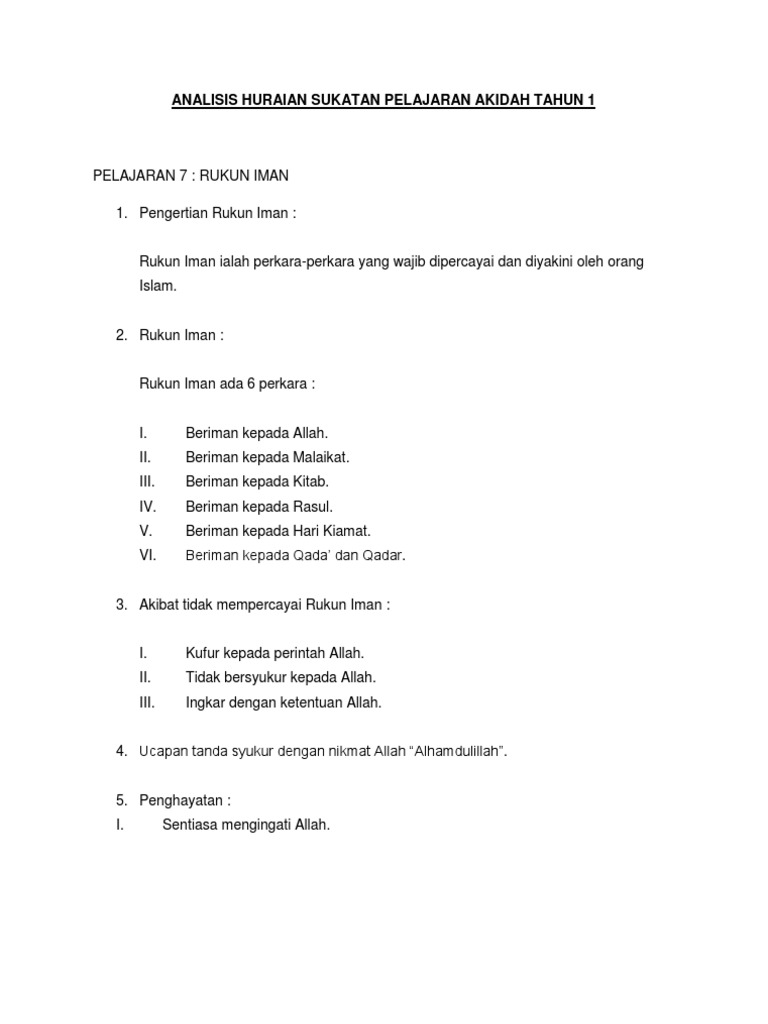 Analisis Huraian Sukatan Pelajaran Akidah Tahun 1