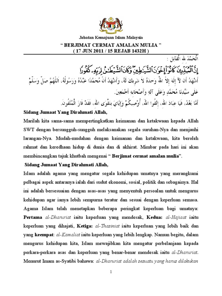Berjimat Cermat Amalan Mulia Rumi