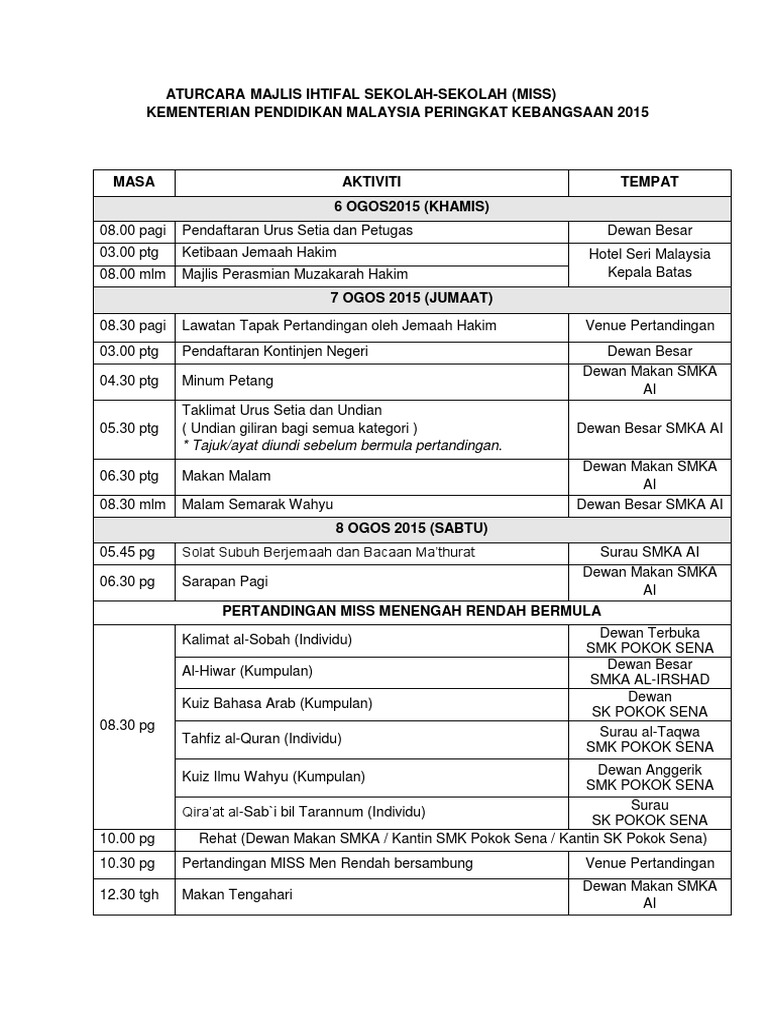 Doc Hari Kecemerlangan Sekolah Berasrama Penuh Ke 41 Tahun 2014 Sm Sains Sultan Mahmud Kuala Terengganu Aturcara Majlis Perasmian Hksbp Ke 41 Zulkeflee A Rahman Academia Edu