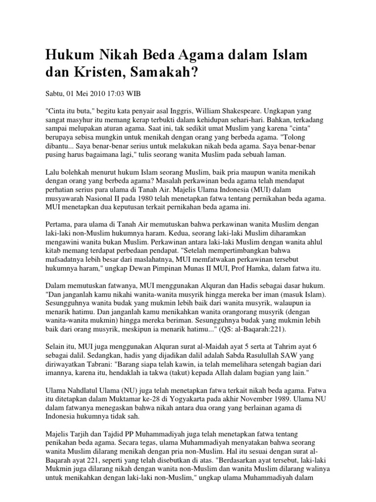 Hukum Nikah Beda Agama Dalam Islam Dan Kristen