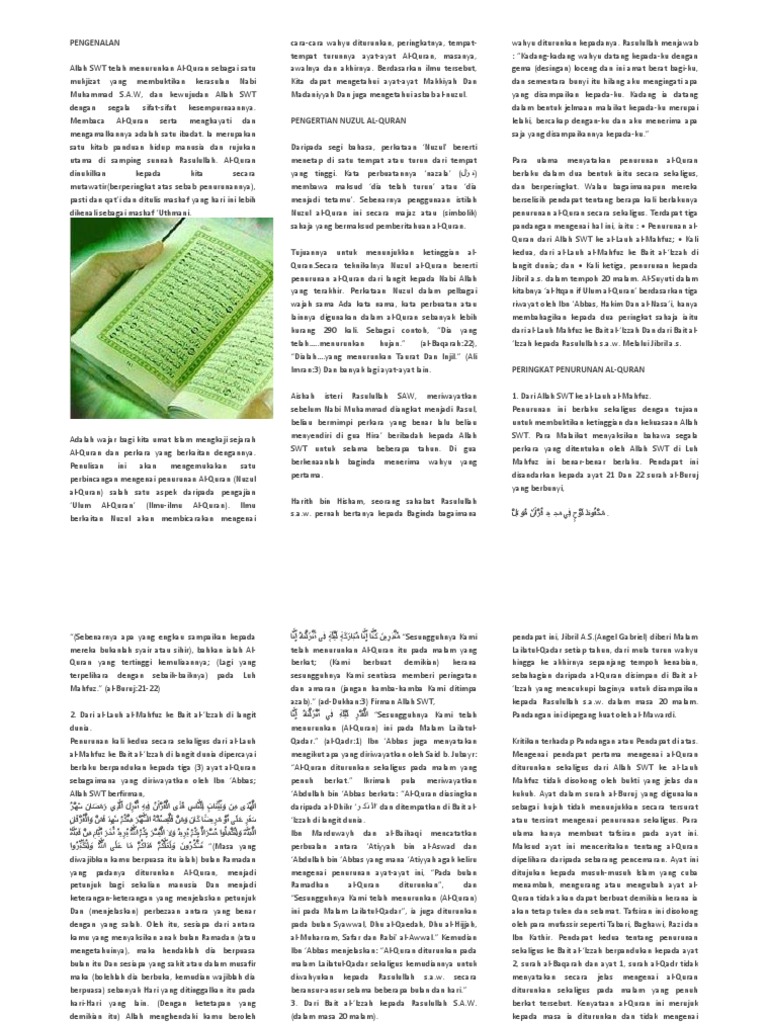 Ayat Ayat Al Quran Diturunkan Secara Berperingkat Peringkat Dalam Tempoh Masa