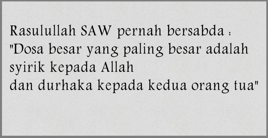 Balasan anak derhaka kepada ibu bapa. Sebaliknya di saat ini banyak orang tua khususnya ibu yang menyakiti hati anak anak mereka. Tidak melayani mereka dan berpaling daripadanya. Anak yang tidak menghormati dan berbakti kepada ibu bapa adalah anak derhaka yang selayaknya menerima balasan daripada allah. Dua kejahatan yang akan dibalas allah di dunia ini adalah zina dan derhaka kepada dua ibu bapa hadith riwayat tabrani jadi apakah balasan bagi anak yang derhaka kepada kedua ibu bapanya.