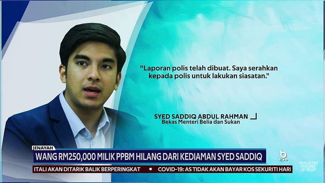 Penangkini Rm250 000 Milik Ppbm Hilang Dari Kediaman Syed Saddiq