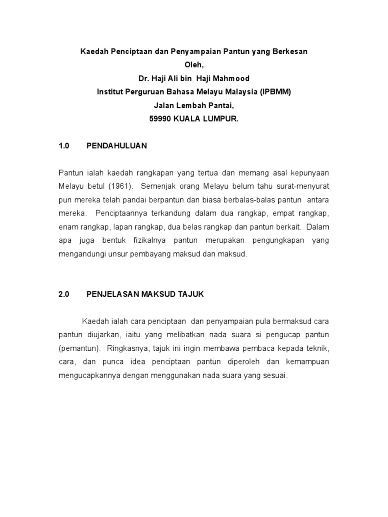 Pdf Instrumen Pantun Berestetika