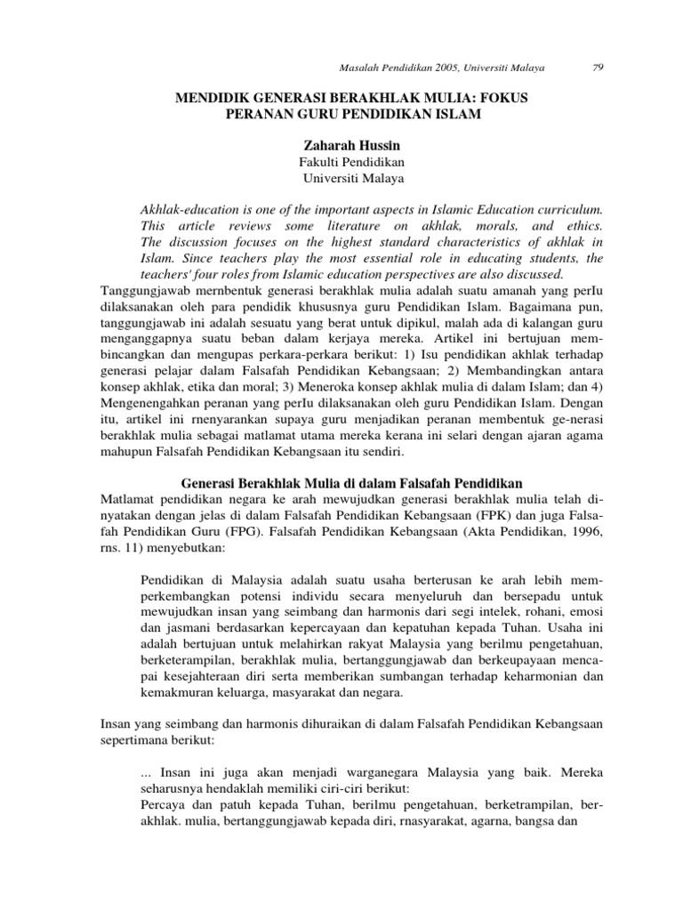 Pdf Penerapan Nilai Akhlak Dalam Menjana Pembangunan Belia