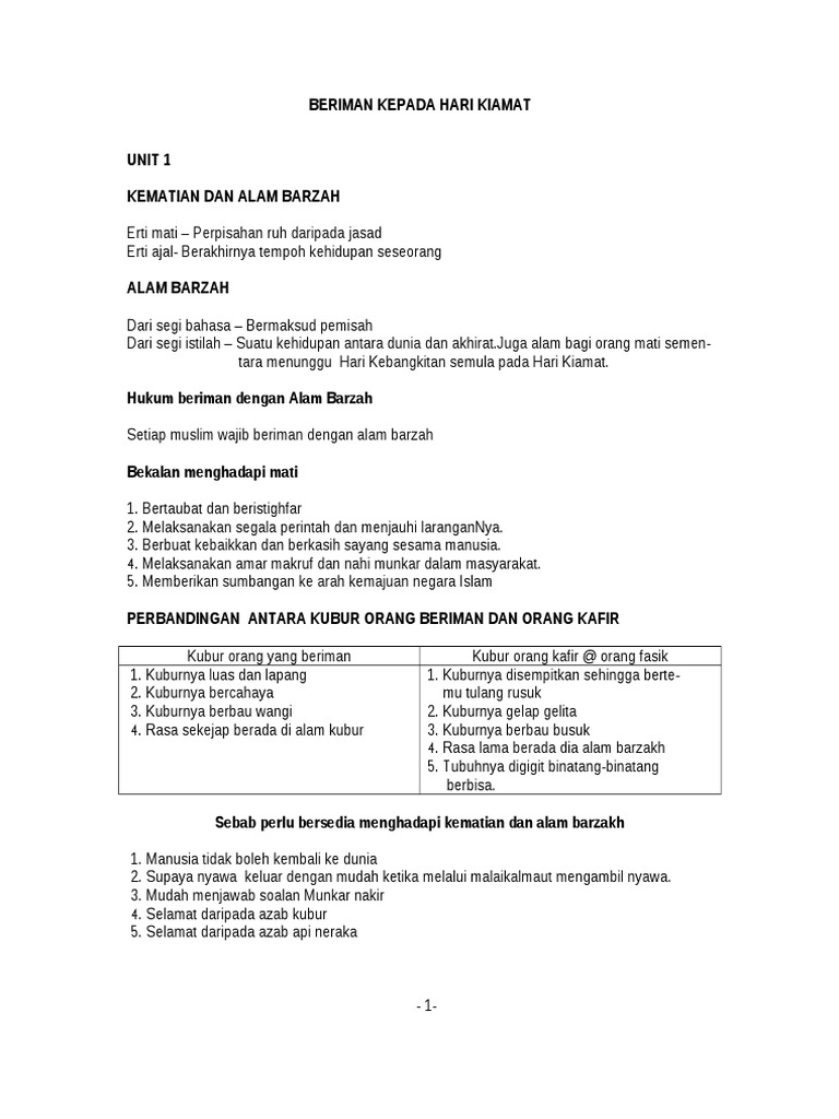Beriman Kepada Hari Akhirat Tingkatan 3 Sumber Pengajaran