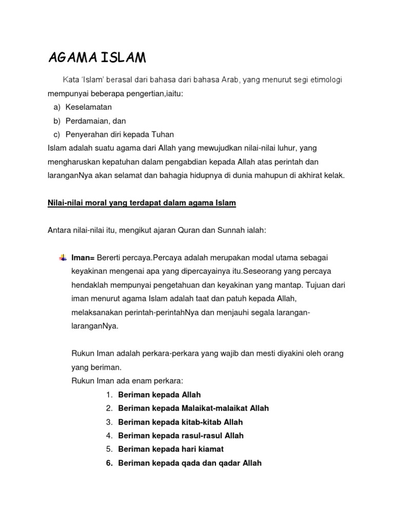 Agama Islam Nilai Nilai Moral Yang Terdapat Dalam Agama Islam