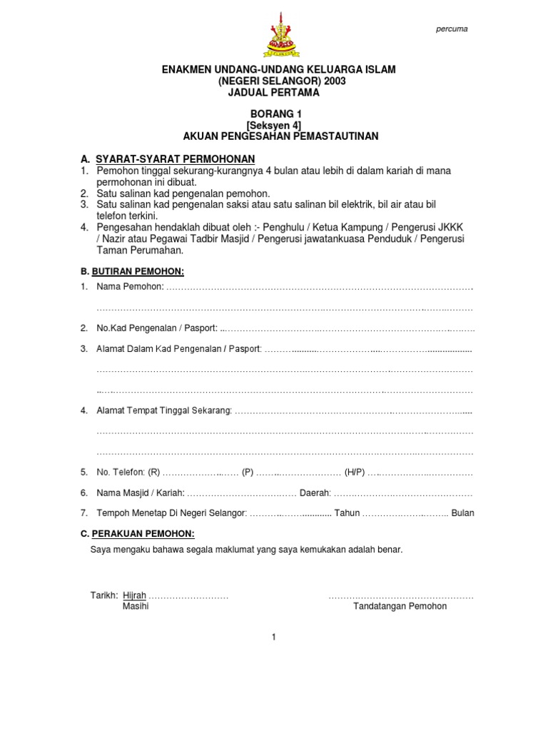 Prosedur Ambil Surat Perakuan Nikah Di Jais Paid Surat Perakuan Pengesahan Akuan Sumpah Nikah Ibubapa 1 1 1 Pemohon Yg Bujang Beralamat Kad Pdf Document