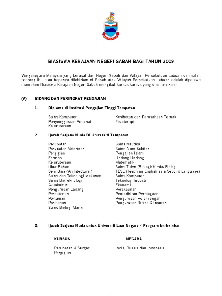 Permohonan Biasiswa Kerajaan Negeri Sabah 2020 Online Bkns Biasiswa 2020 2021