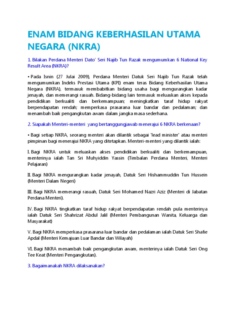Bidang Keberhasilan Utama Negara Atau Nkra National Key Resu By Suhaila Mohd Ya Acub