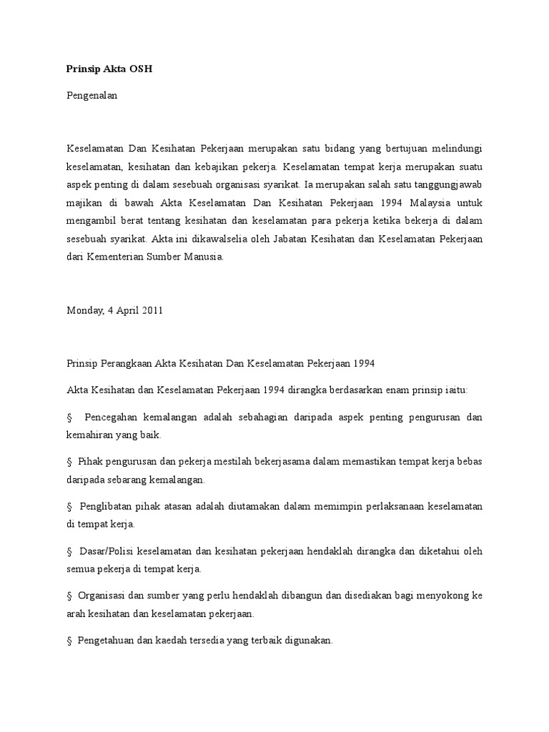 Akta Keselamatan Dan Kesihatan Pekerjaan 1994 Akta 514