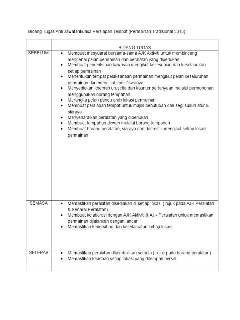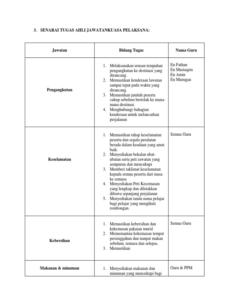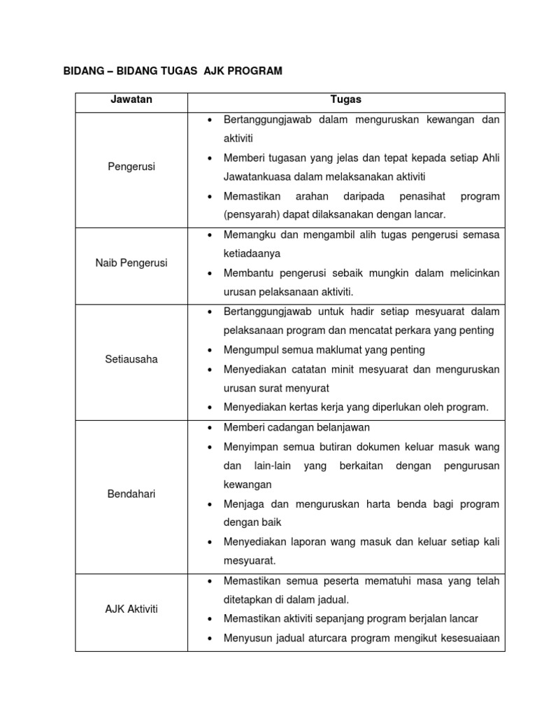 Senarai Tugas Ahli Jawatankuasa Pelaksana