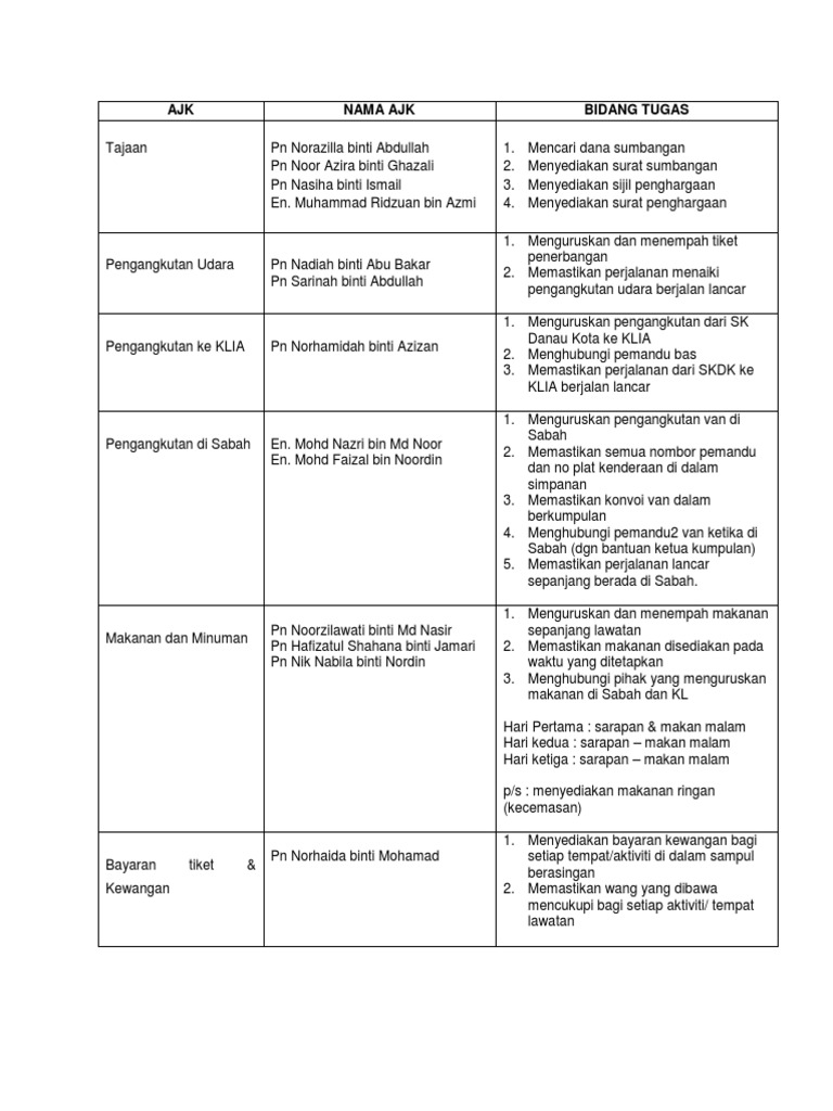 Bidang Tugas Ajk Lawatan Sambil Belajar Ke Sabah