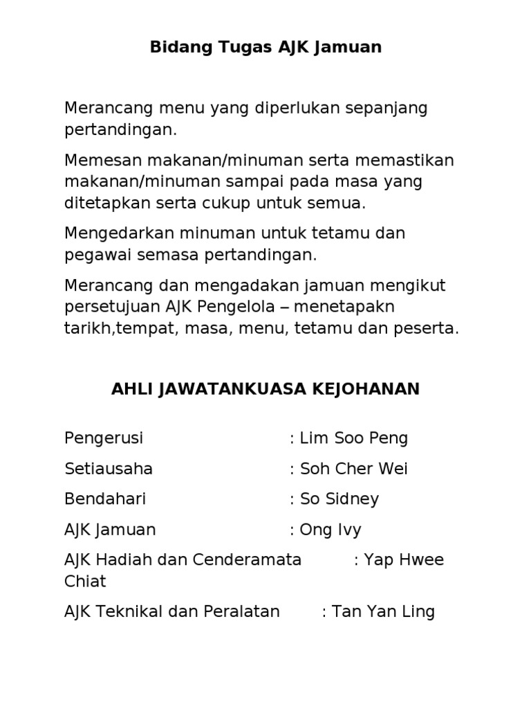 Bidang Tugas Ajk Jamuan