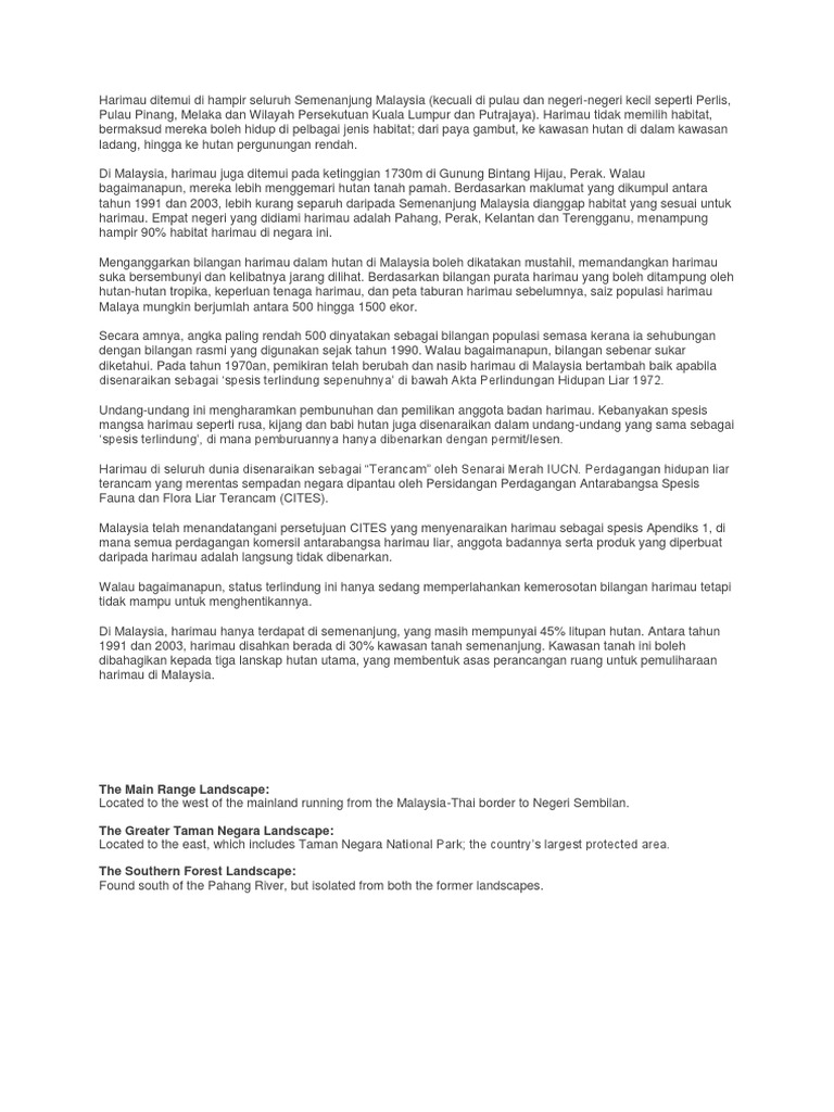 Harimau Ditemui Di Hampir Seluruh Semenanjung Malaysia
