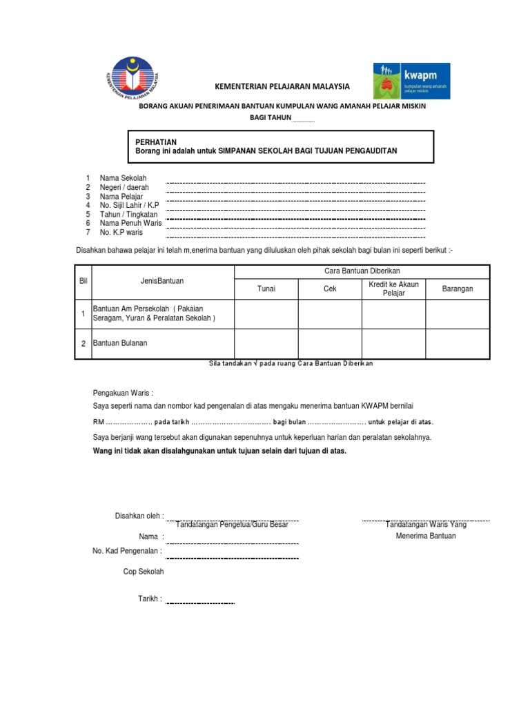 Lampiran B Borang Akuan Penerimaan Bantuan Kwapm 28129 Pdf