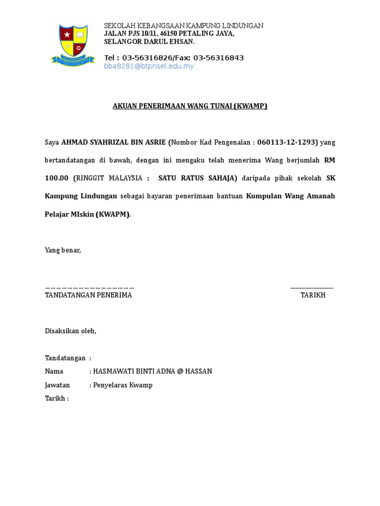 Kementerian Pendidikan Malaysia Borang Akuan Penerimaan Kad Pengenalan Saksi Borang Akuan Penerimaan Bantuan Kumpulan Wang Amanah Pelajar Miskin Bagi Tahun