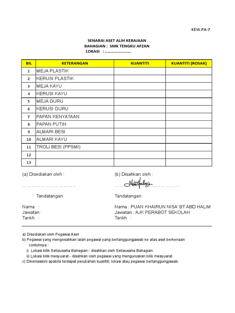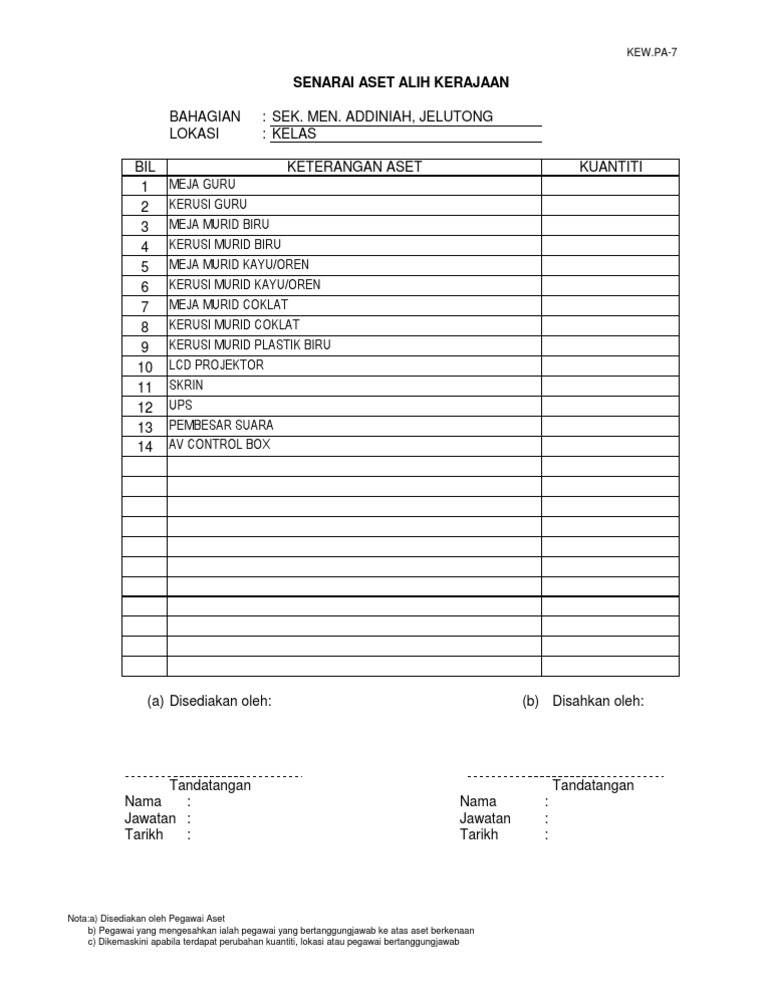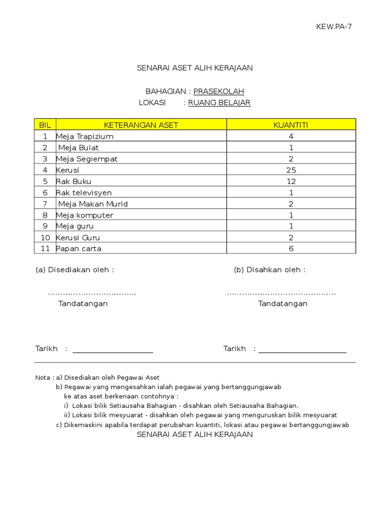 7 Kew Pa 7 Senarai Aset Di Lokasi Doc Pekeliling Perbendaharaan Malaysia Am 2 3 Lampiran E Kew Pa 7 Senarai Aset Alih Kerajaan Bahagian Lokasi Bil Course Hero