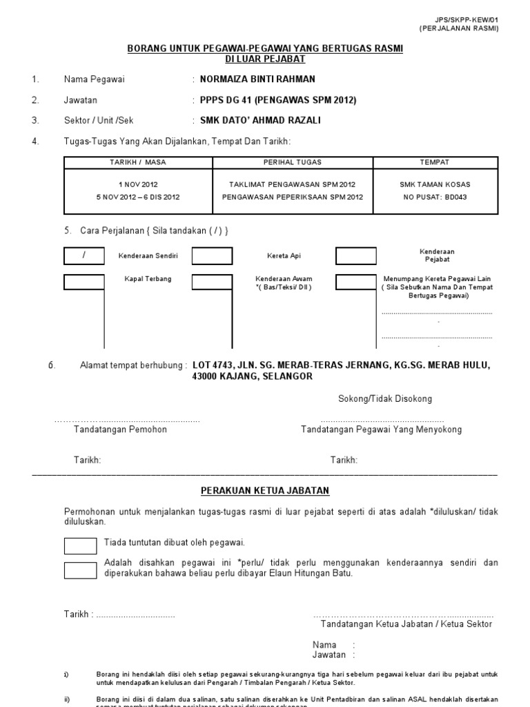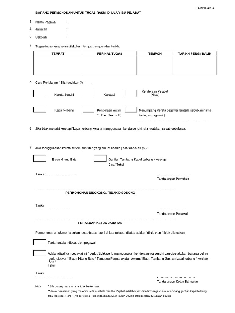 Permohonan Bertugas Rasmi Di Luar Ibu Pejabat Pdf