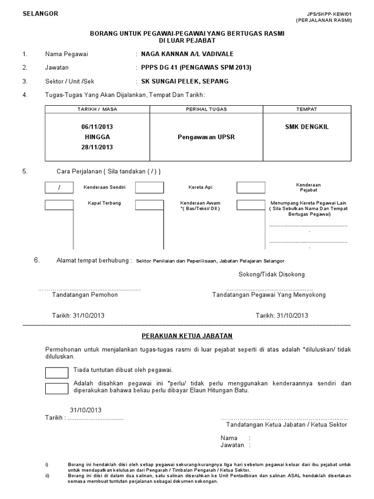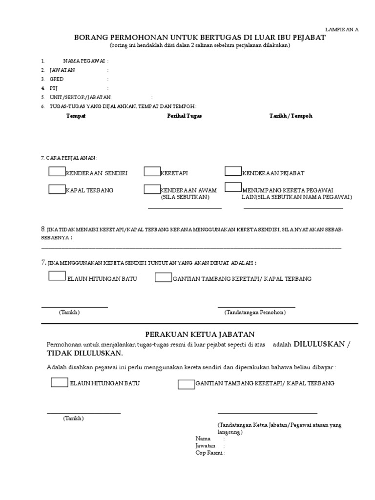 Borang Kebenaran Bertugas Di Luar Pejabat Pdf Document