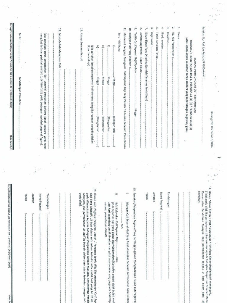 Permohonan Cuti Tanpa Gaji L Tanpa Rekod Separuh Gaji Pdf Document