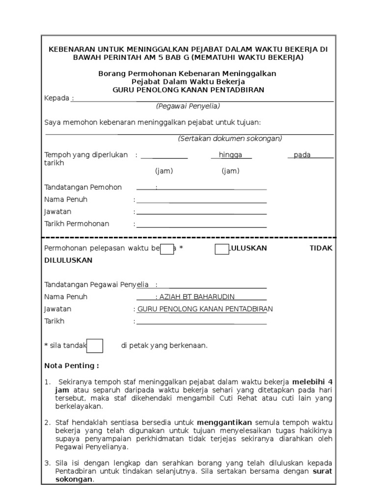 Template Borang Meninggalkan Pejabat Sewaktu Bekerja