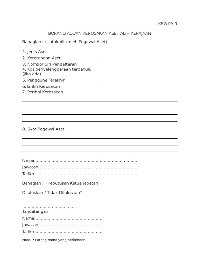 Kew Pa 9 Borang Aduan Kerosakan Aset Alih