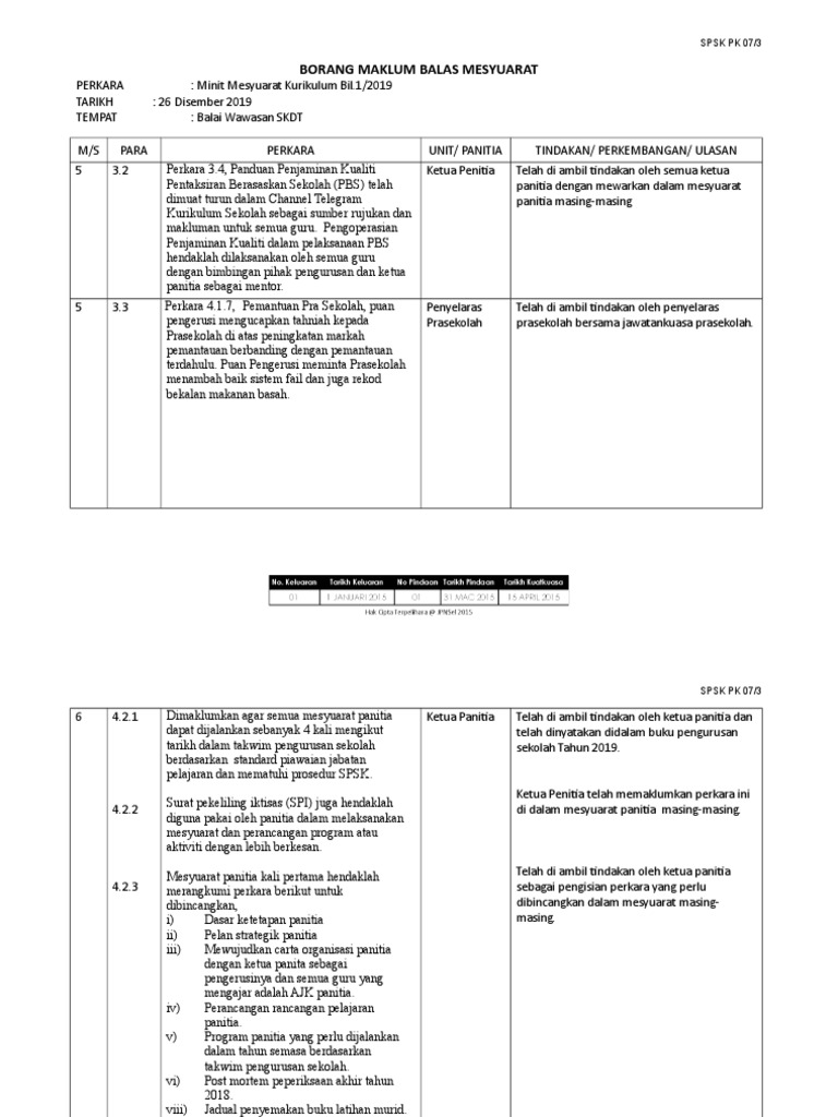 Pk07 3 Borang Maklum Balas Minit Mesyuarat Bil1 2020 Edited Pages 1 5 Text Version Anyflip