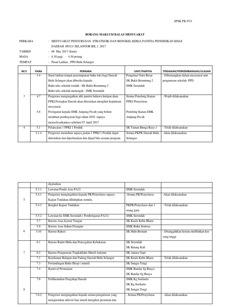 Pk07 3 Borang Maklum Balas Doc Spsk Pk 07 3 Perkara Tarikh Tempat M S Para Disediakan Oleh Urus Setia Mesyuarat U2026 U2026 U2026 U2026 U2026 U2026 Tarikh Borang Course Hero