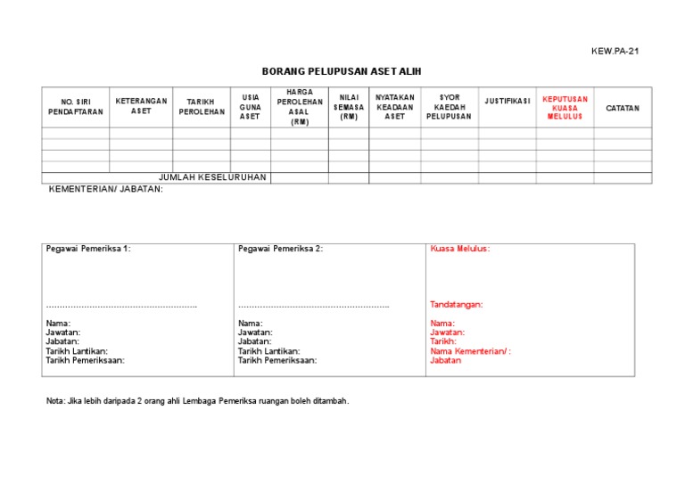 Borang Pelupusan Aset Alih Kew Pa 21 Doc