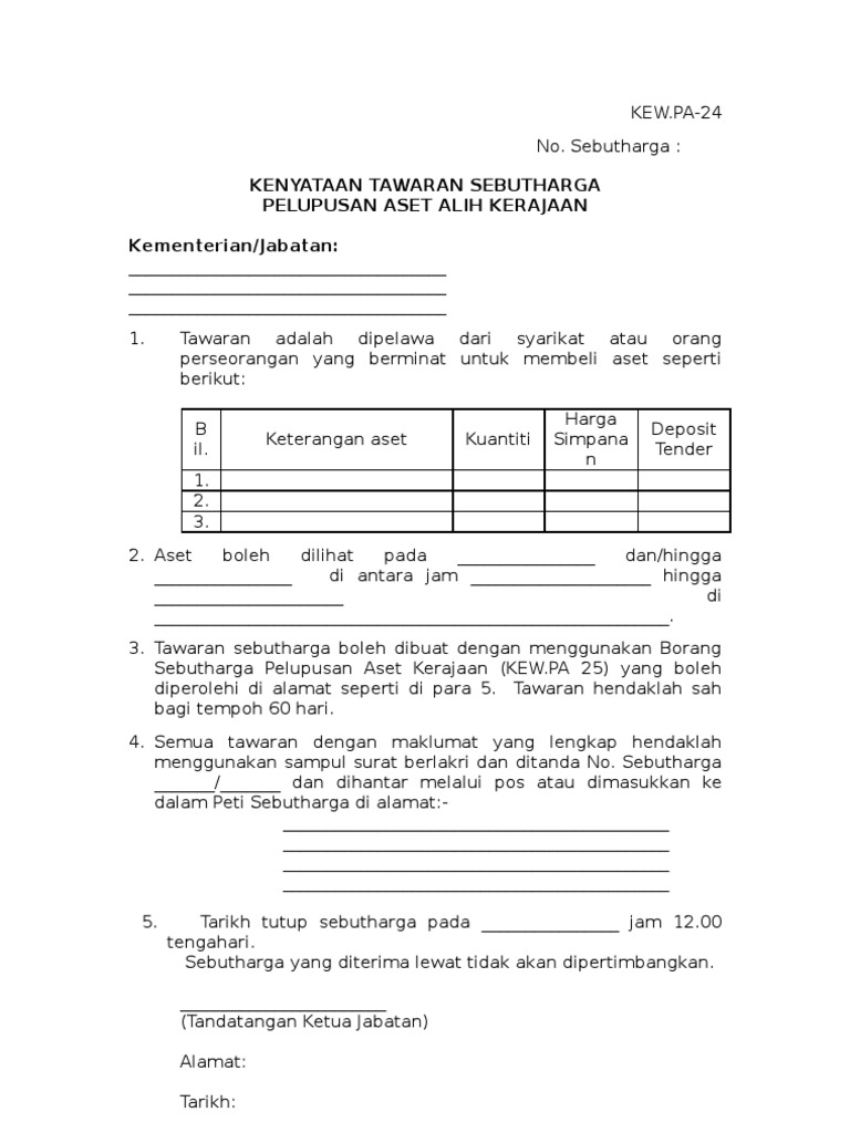 Kew 1 Pa 21 Kenyataan Tawaran Tender Pelupusan Aset Alih