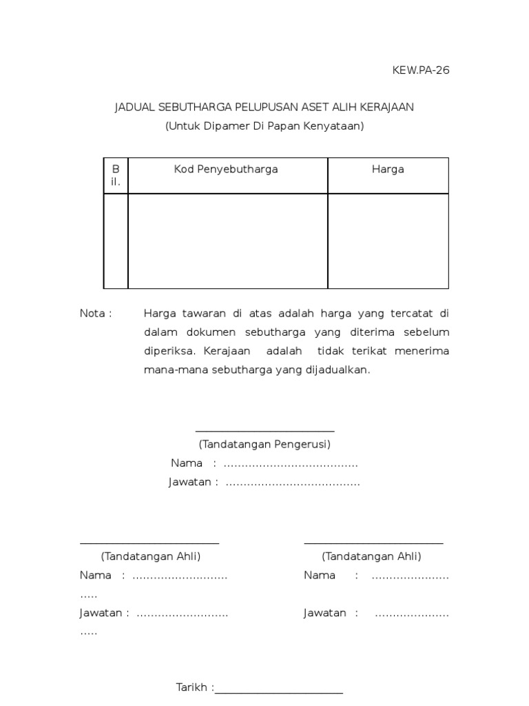 Kew 1 Pa 26 Jadual Sebutharga Pelupusan Aset Alih