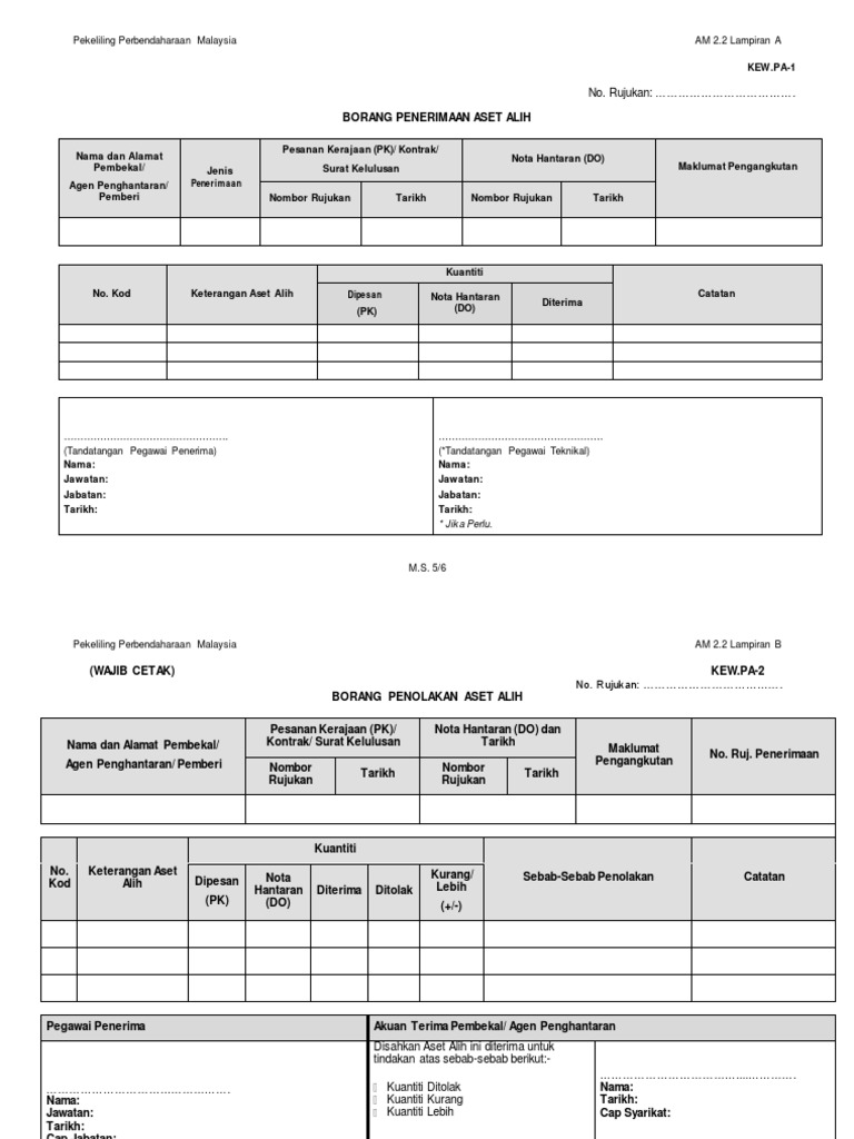 Kew Pa 1 Borang Laporan Penerimaan Aset Alih Kerajaan