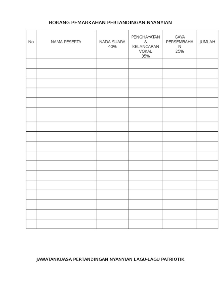 Borang Pemarkahan Pertandingan Nyanyian Lagu Patriotik Docx