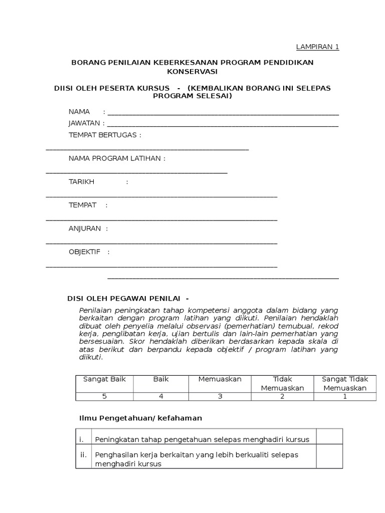 Doc Borang Penilaian Keberkesanan Kem Kepimpinan Shahrul Nizam Academia Edu