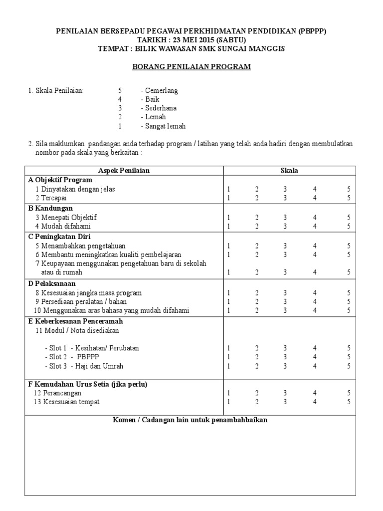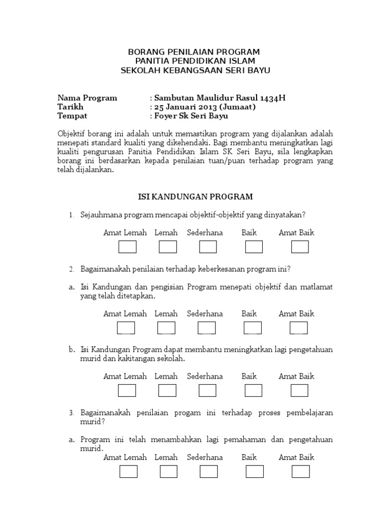 Borang Penilaian Keberkesanan Program Motivasi Download Docx