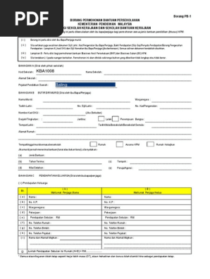 Borang Pb1 Borang Permohonan Bantuan Persekolahan