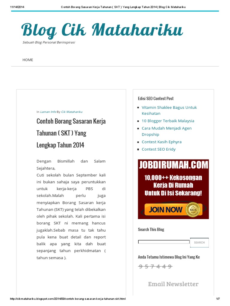 Contoh Borang Sasaran Kerja Tahunan Skt Yang Lengkap Tahun 2014 Blog Cik Matahariku
