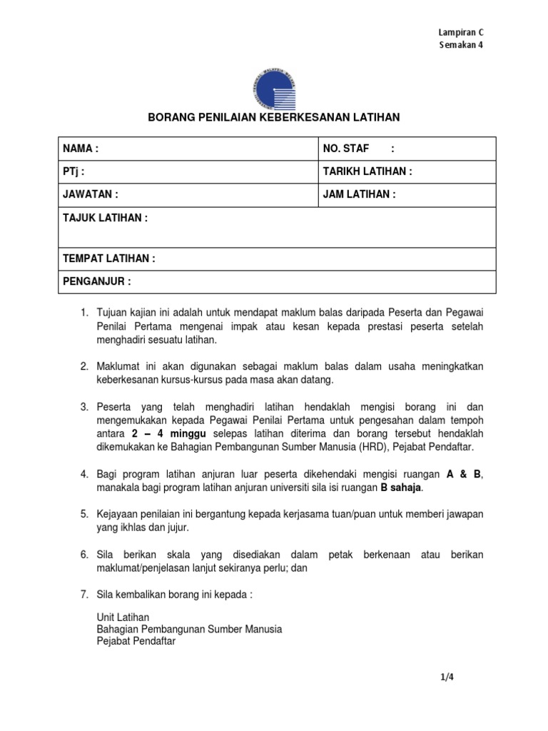 Contoh Borang Soal Selidik Keberkesanan Latihan