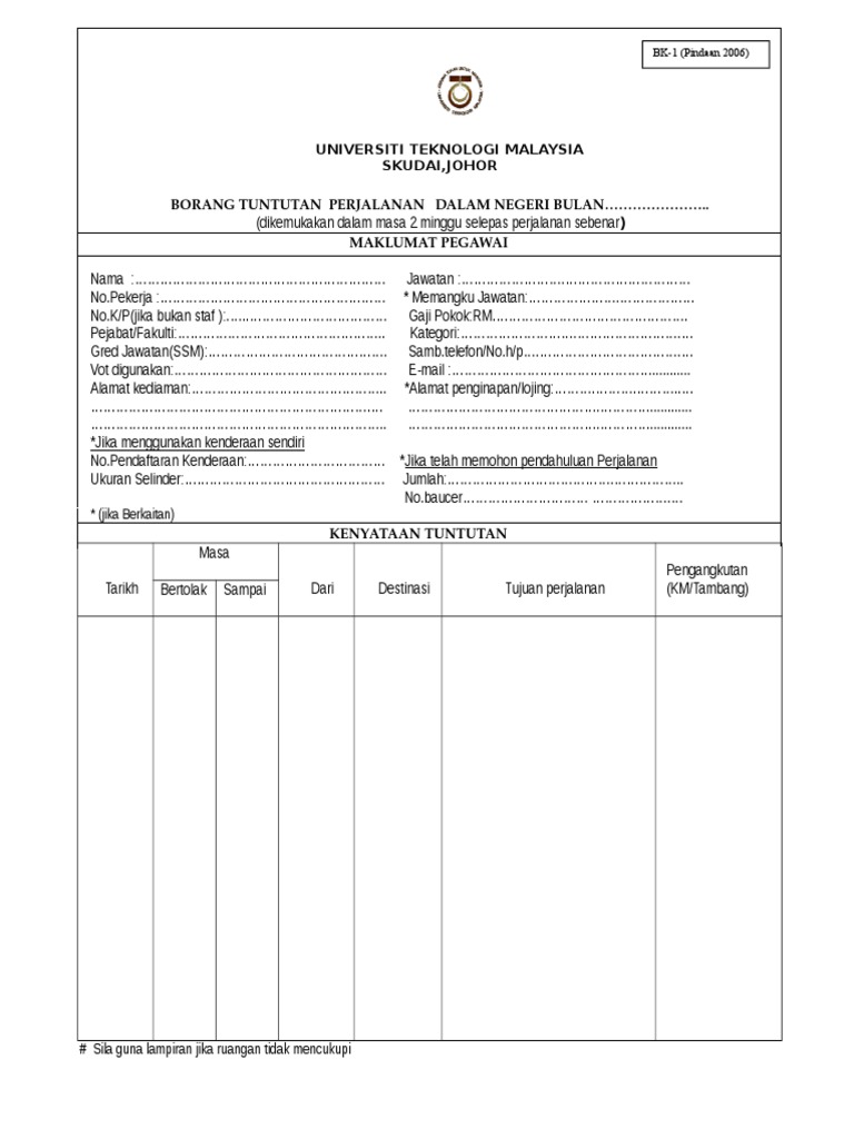 Borang Kosong Tuntutan Perjalanan