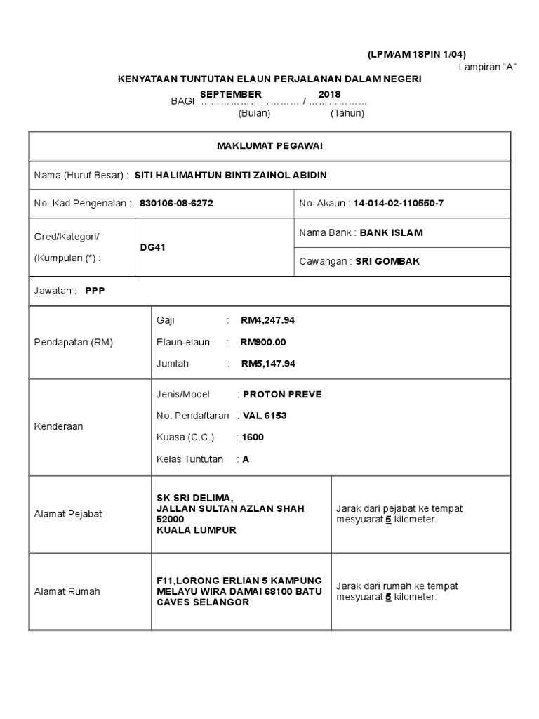 Doc Borang Tuntutan Elaun Perjalanan Dalam Negeri Samuel Louis Academia Edu