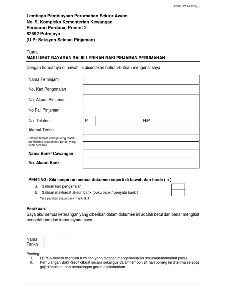 Contoh Surat Permohonan Pembatalan Pinjaman Rumah Lppsa