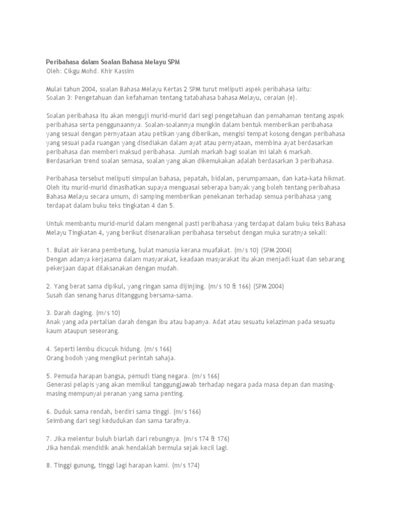 Latihan Dan Jawapan Peribahasa Soalan 3 E Semoga Dapat Membantu Pelajar Menghadapi Peperiksaan Spm 2017